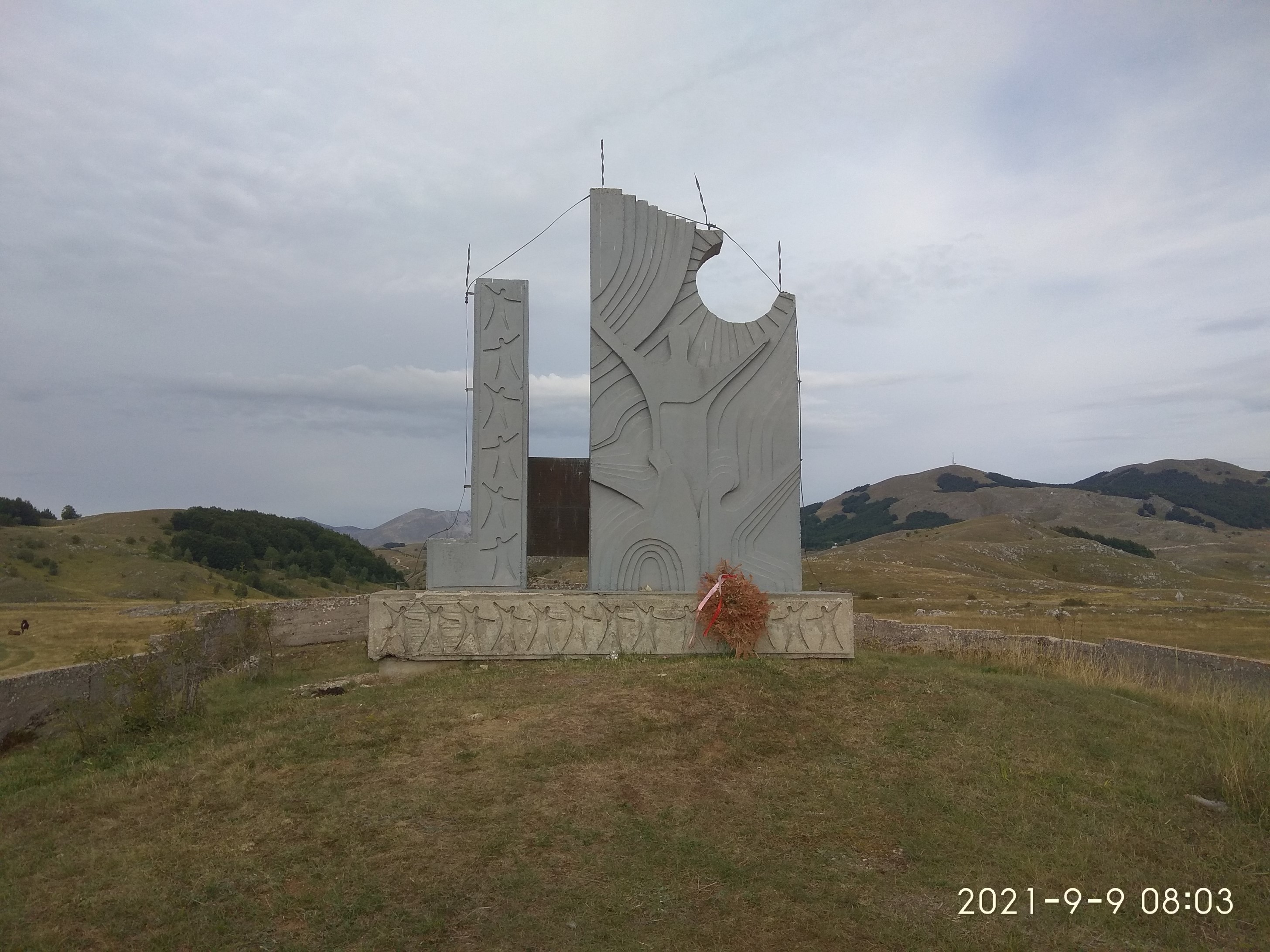 Sice nevím kde to je a coto je, ale ten hromosvod je celkem síla... Není to náhodou železobeton, s armaturou až do země? Tím pádem jsou ty dráty a cingrlátka z kroucené pásoviny úplně zbytečný, leda by to byla plánovaná součást toho monumentu...