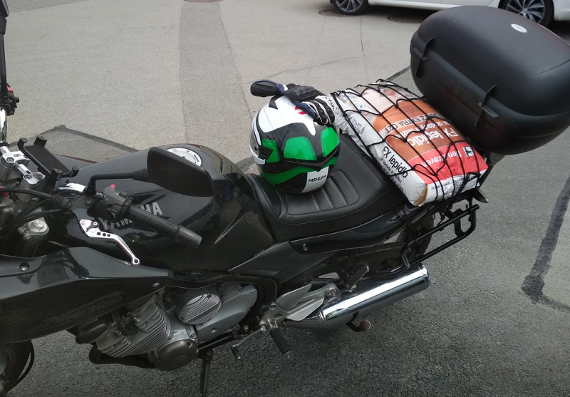 lepidlo ma 25kg, v topcase su 2x 7,5kg pixle Primalexu a nejaka sparovacka (asi 2 kila) - jazdilo sa s tym prekvapivo v piatkovej brnenskej spicke fajne. Garaz uz je takmer hotova!