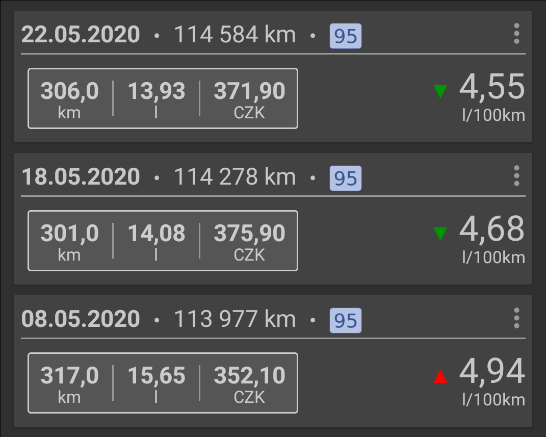 Zatím slušné progres. Teda na to, že jsem změnil jen benzínku. Ještě upravím trasy a jízdní styl a mám tam těch 3,5