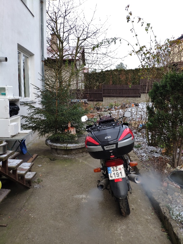 Jinak u nas kazdej den neco malo nasnezi. Takze silnice furt mokry rozsoleny. No, uvidim zitra. Zasolit motorku nechci.