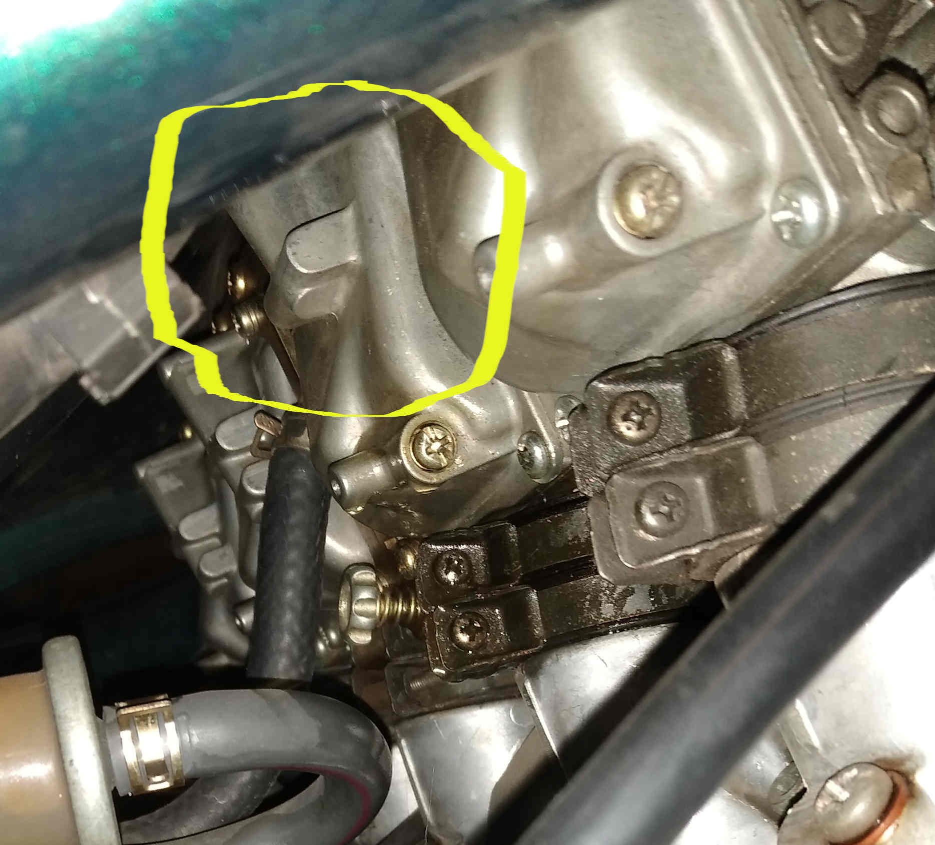 Druhý zprava teče. Kolem víka plovákové komory přes to víčko a dolů přes páskové spojky a gumové hrdlo.