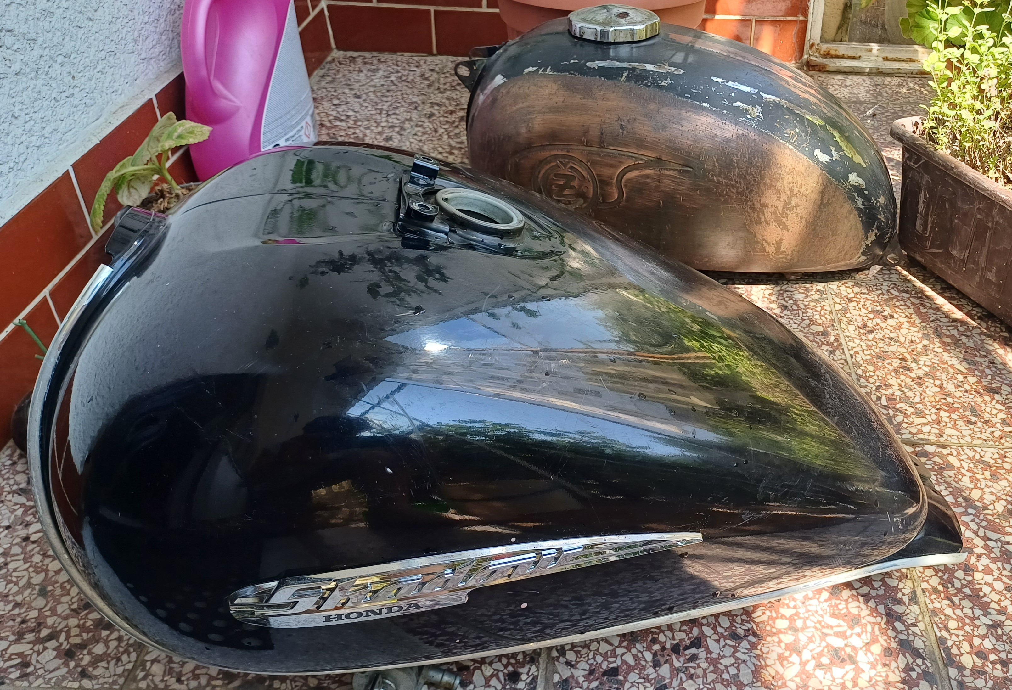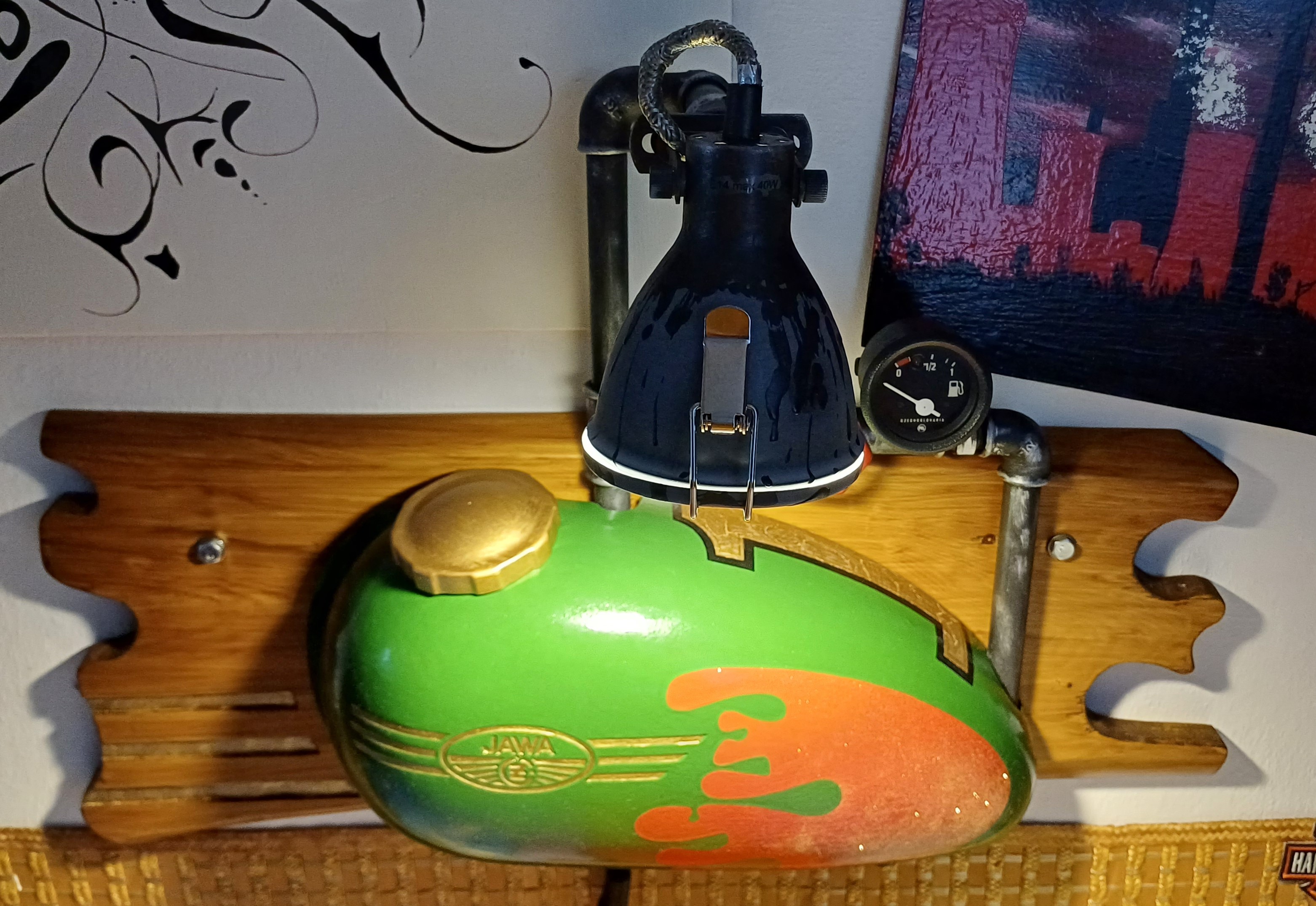 Robil už niekto lampu, dekoráciu, ... z moto súčiastok, šrotu? Doteraz som šrot vyhadzoval /reťazové koliečka, reťaze, sviečky, ...., no už som našiel uplatnenie. Zaujali ma minulý týždeň nejaké takéto výtvory z Ameriky: Tak som prešiel bazoš, našiel nejaké vhodné nádrže /tvarové a lacné, zas tisícky za šrot nedám/ a ako prvú idem urobiť nástennú lampu /už mám aj iné motivujúce nápady na ďalšie projekty/.