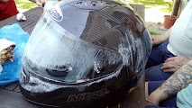 ...moje přilba tehdy vypadala podobně, možná i hůř, a to jsem celých 115 metrů brzdil rukama...