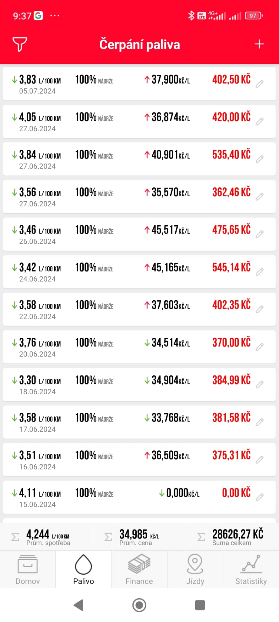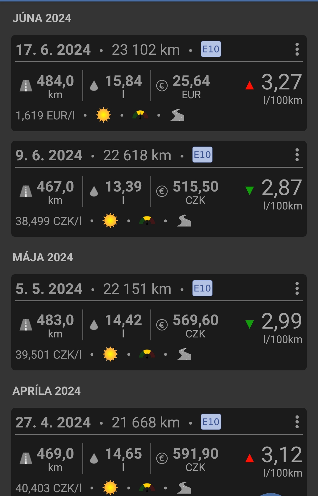 Já měl nejvíc 5,1. Prumer 4,7. Ale zacal jsem si to psat az od 115 000 km na budiku.
