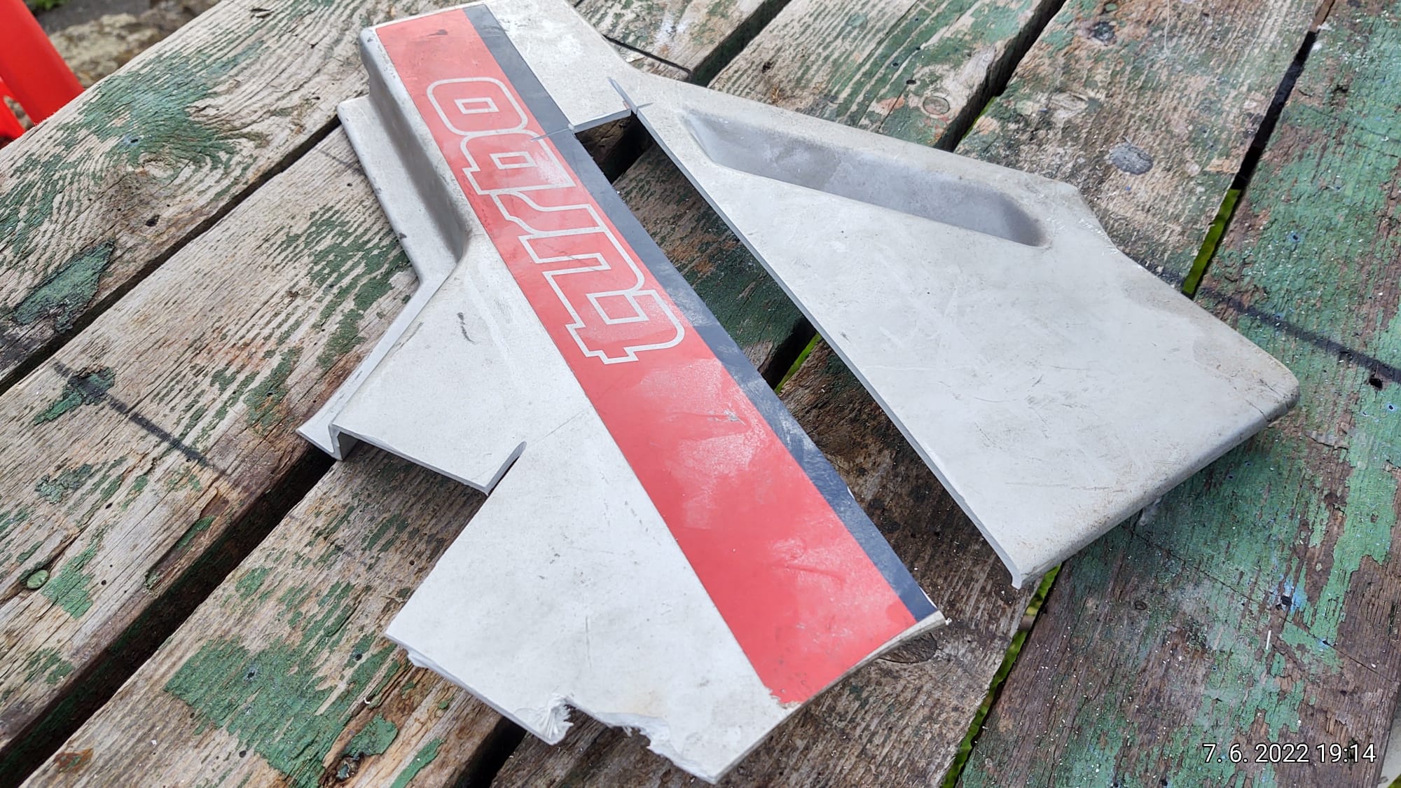 A už se pracuje na "plastech". Teda věděli jste, že to není plast jako třeba PE? Ale něco jako skelné plátno pro laminát a místo pryskyřice je tmel. Vůbec se to netaví. Při řezání neuvěřitelně práší. Jestli on to není Trabant. Chybějící kousky se musí dodělat.