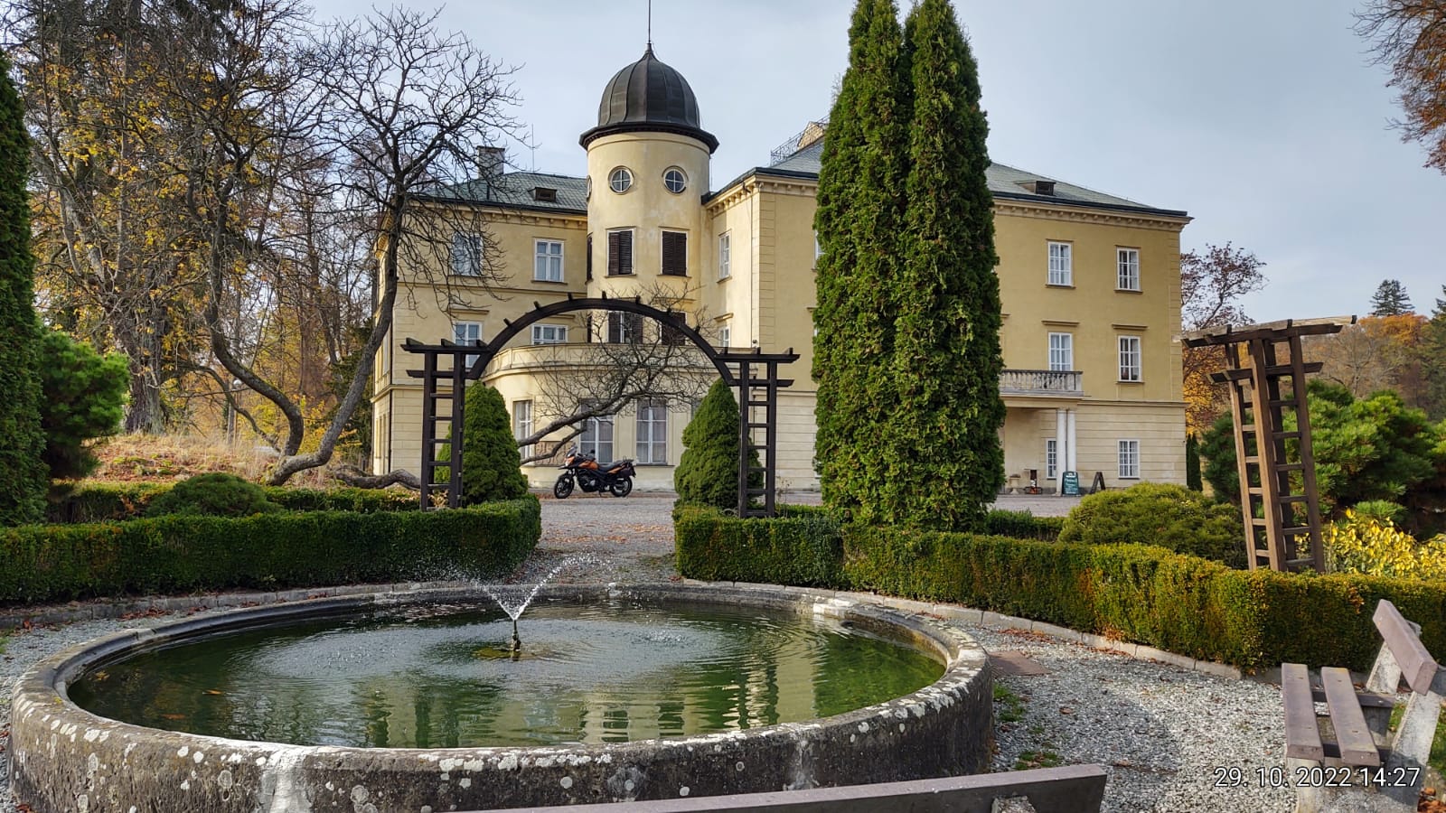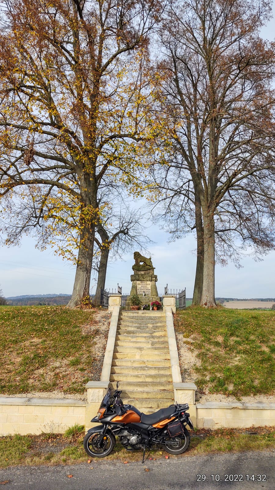 Zámek napověděl net, že jsou Bílé Poličany a pomník je podle času fotek 5 minut od zámku a to je podle Mapy.cz "Pomník obětem světových válek" Rohozice.