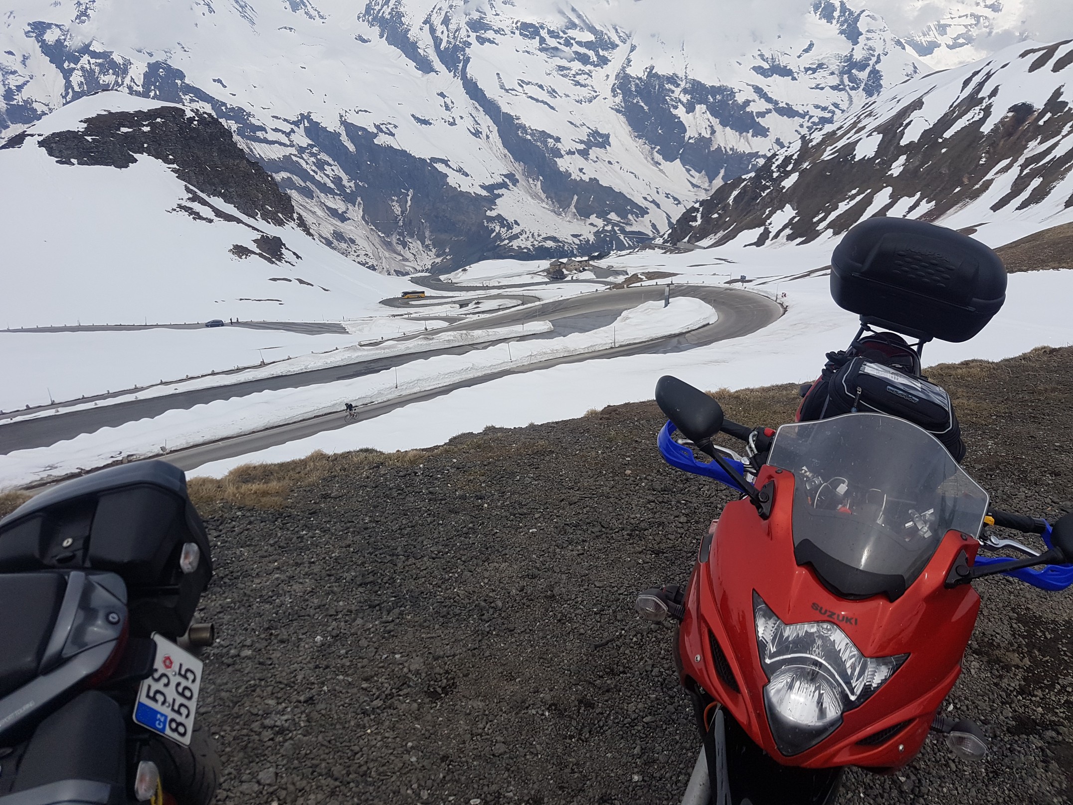 tak jsem si udělal radost o prodlouženém víkendu a projel se na GrossGlockner cca týden po tom, co to pro motorky otevřeli, projel pár italských pass, jedno jsme museli objet a pak zajeli na Mangart (i přes zákaz vjezdu), Triglav, jezero Bled do Slovinska. Naplánovali supr cesty mimo hlavní tahy, minimum provozu, cca na 50 km jsme vždy potkali čtyři cyklisty, dvě auta a jednoho lyžaře :D .