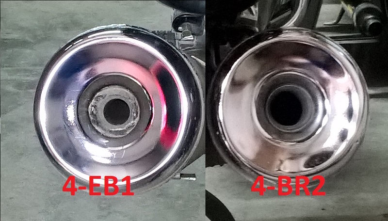 Po výměně poškozeného pravého výfuku (4-EB1) za jiný (4-BR2) sem zaznamenal, že má trochu jiný zvuk – na volnoběh se velmi blíží XJ 900. Až po delší době sem si všiml, že ten výfuk má na konci vetší díru. Na ty verze 4-EB1 se evidentně dovařovalo zúžení...