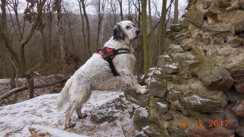 Tak se zadařilo ;) Je to nakonec křížený skotský setr - jeho matka je irský a praotec anglický setr. Narodila se na statku, nemá žádné certifikáty či předpoklady být favoritkou soutěží, prostě normální pes do lesa...